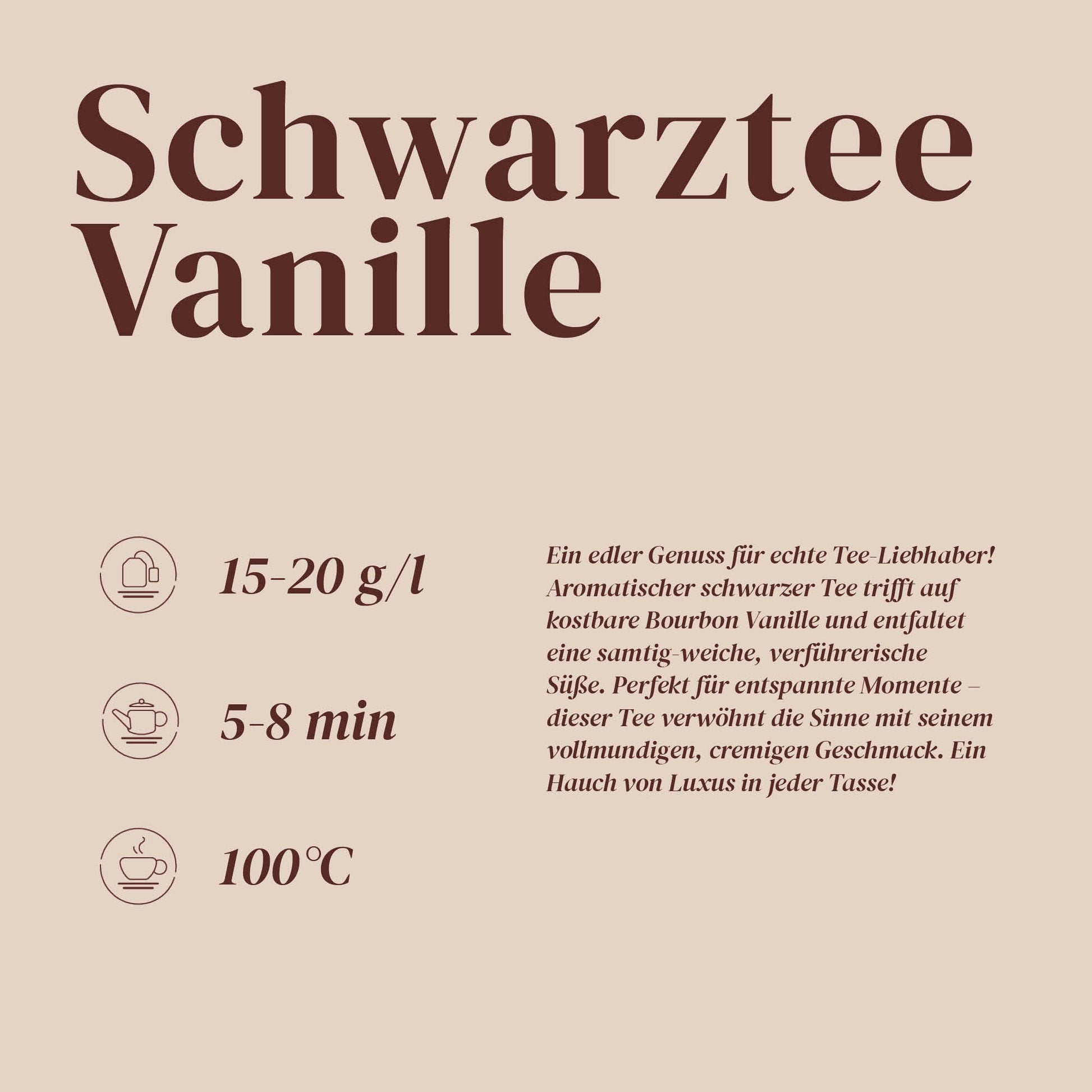 schwarzer Tee, extrahierte Bourbon Vanille (4,5%), Aroma, natürliches Aroma.