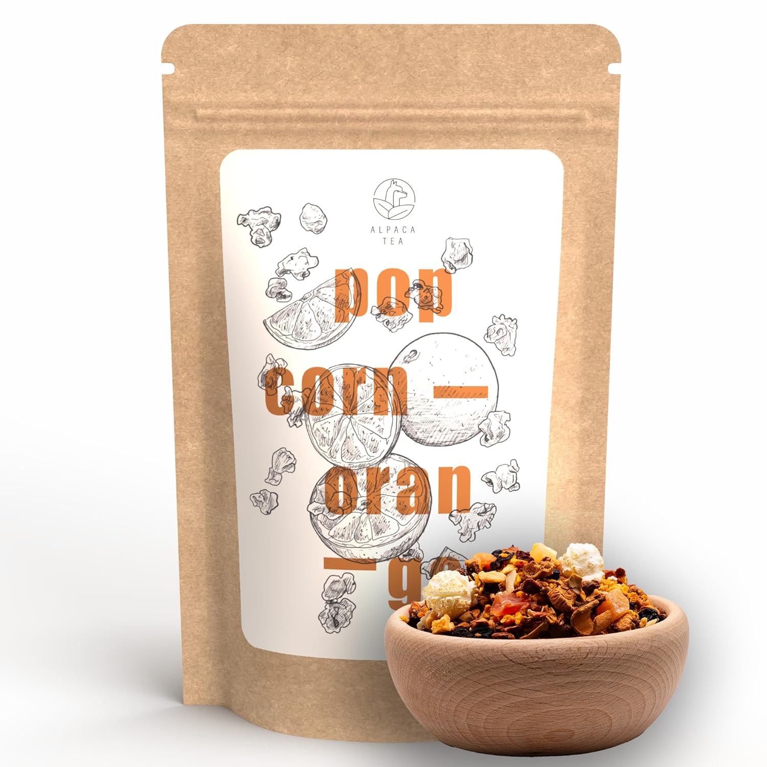 Unsere Früchteteemischung Popcorn Orange ist ein außergewöhnliches Geschmackserlebnis, das überrascht und begeistert: Die fruchtige Frische von sonnengereiften Orangen trifft auf die warme, leicht karamellige Note von Popcorn. Der Tee vereint spritzige Zitrusaromen mit einem Hauch von süßer, gerösteter Behaglichkeit, die an einen gemütlichen Kinoabend erinnert. Die Kombination ist einzigartig und harmonisch, mit einer lebhaften Fruchtigkeit, die durch die sanfte Popcorn-Wärme perfekt ergänzt wird. Ein kreativer Genuss für Teeliebhaber, die das Besondere suchen – ideal für gesellige Momente oder einen Hauch von verspielter Nostalgie in der Tasse.